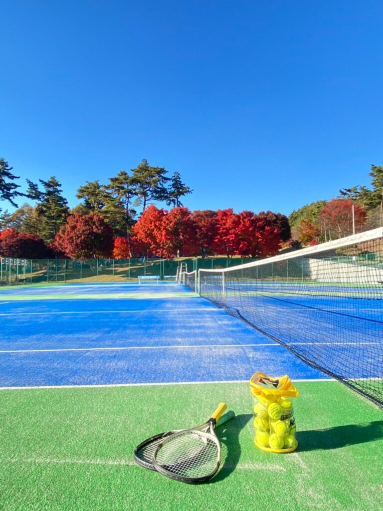 場所は、ヨドバシカメラ 八ヶ岳富士見高原スポーツセンター。とても綺麗なオムニコート。真っ赤に紅葉したモミジに囲まれて気持ちよかった😃