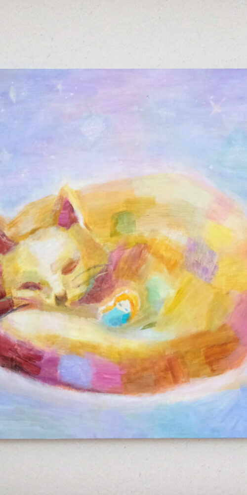 4 星空の毛布が ふわりと おりてくる 漂いはじめる 夢への入り口 あたたかな鼓動 静かな寝息 「森とつながる」 65×65cm, キャンバスにリキテックス作品…