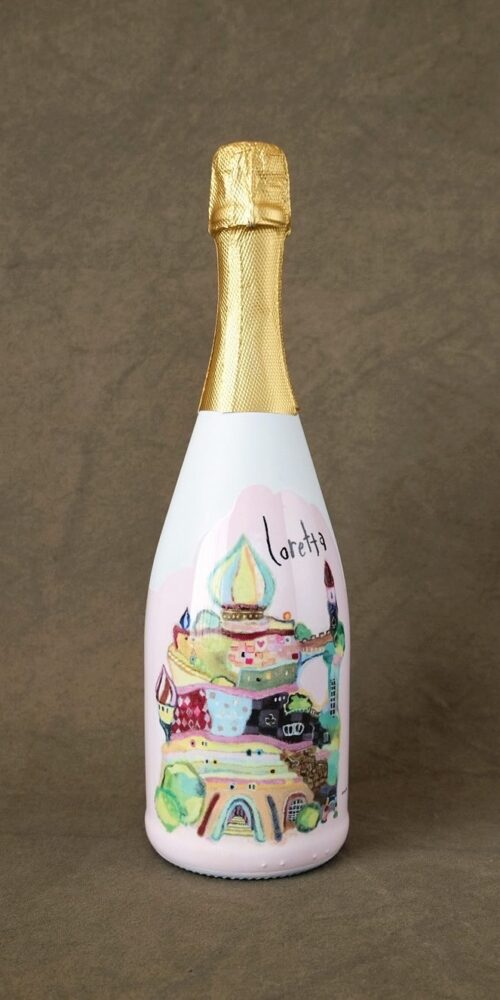 b-ex社の50周年のお祝いのなかで、 この瞬間だけ生まれたロレッタの限定品 1 シャンパンラベル 王様が杖をもったフォルムになっています。 お城の中には、トラ…
