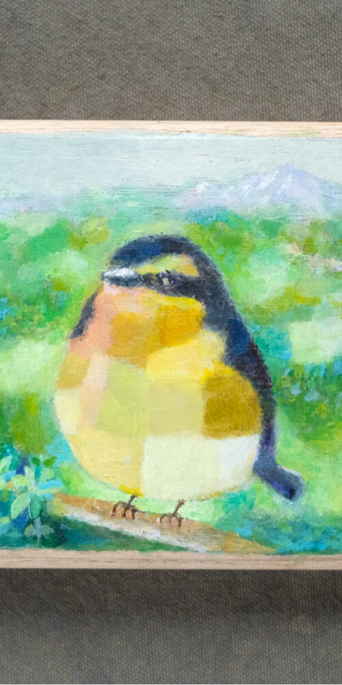 つゆ草 もえぎ 山吹色 パレットを彩る それぞれの祈りたち ひと呼吸 とどまり 惹きつけられた その思い いま 小さな光が ひとつ届いた 『コイナリィ』 45×…