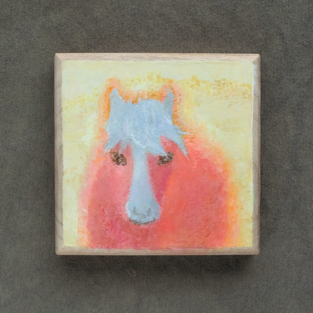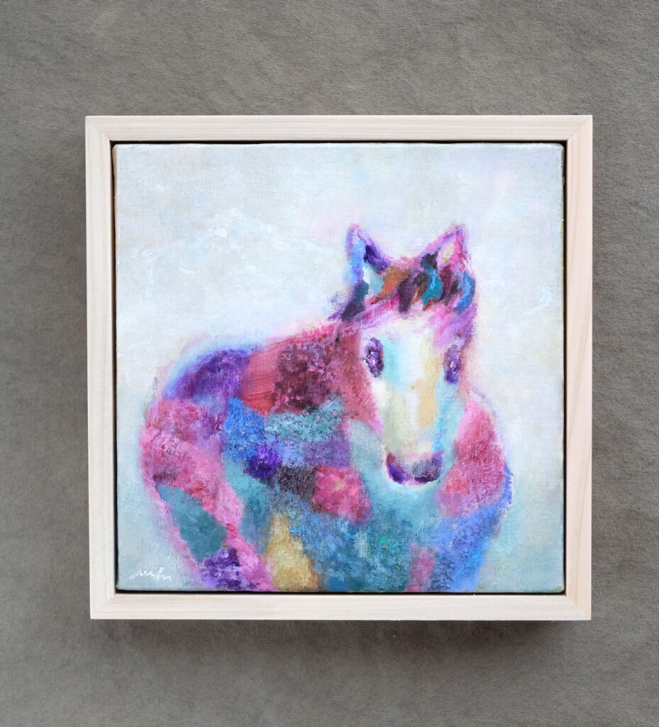 4 星空の毛布が ふわりと おりてくる 漂いはじめる 夢への入り口 あたたかな鼓動 静かな寝息 「森とつながる」 65×65cm, キャンバスにリキテックス作品…